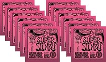 Gauges 9-11-16-24w-32-42. Made from nickel-plated steel wire wrapped around tin-plated hex-shaped steel core wire. They produce a well-balanced all-around good sound. Ernie Ball replacement strings are precision manufactured to the highest standards and most exacting specs to assure consistency, optimum performance, and long life. Jimmy Page, Eric Clapton, Steve Vai, and Slash are among the long list of Ernie Ball Slinky players.